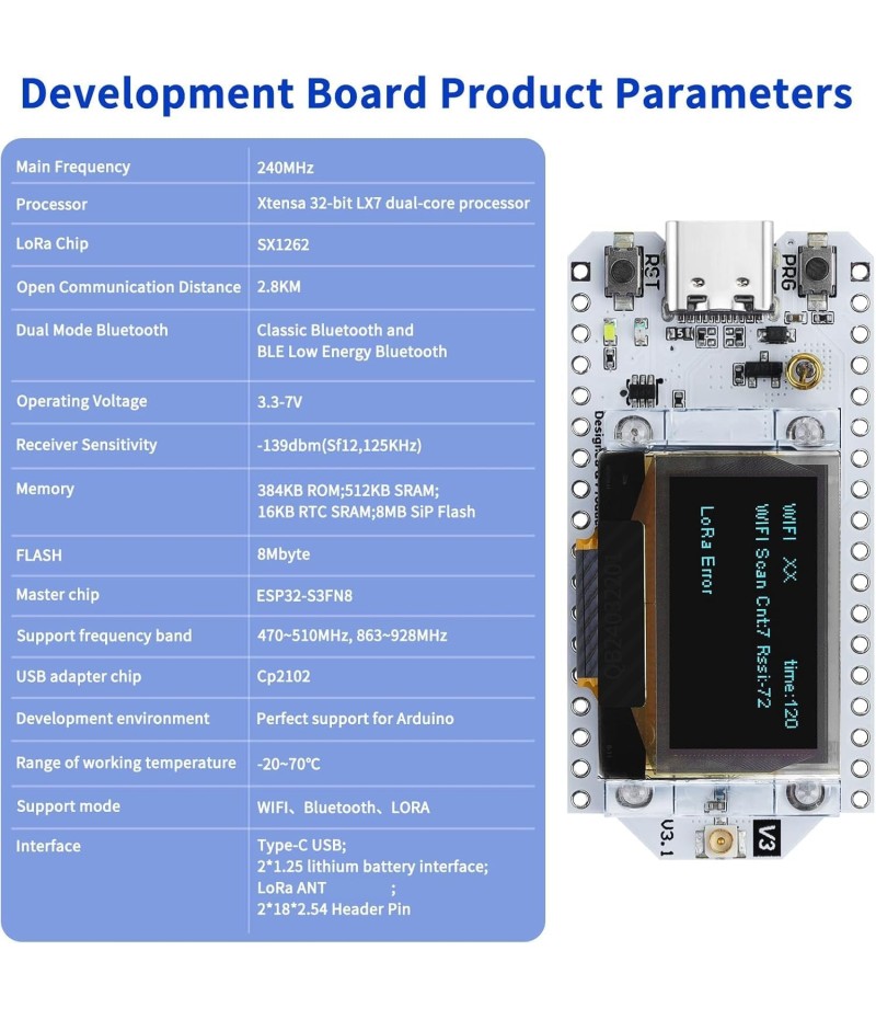 • Developer-Friendly Design: Crafted for creators, our board is Ar duino-compatible, supports a working voltage of 3.3~7V, and operates within a temperature range of -20~70°C. With a receiver sensitivity of -139dbm (Sf12, 125KHz), it’s designed for developers who demand precision