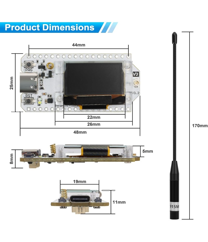 • Extended Communication Range: Experience an impressive communication range of up to 2.8KM in open areas with our board’s support for frequency bands 915MHz. The Cp2102 USB to serial chip enhances connectivity options