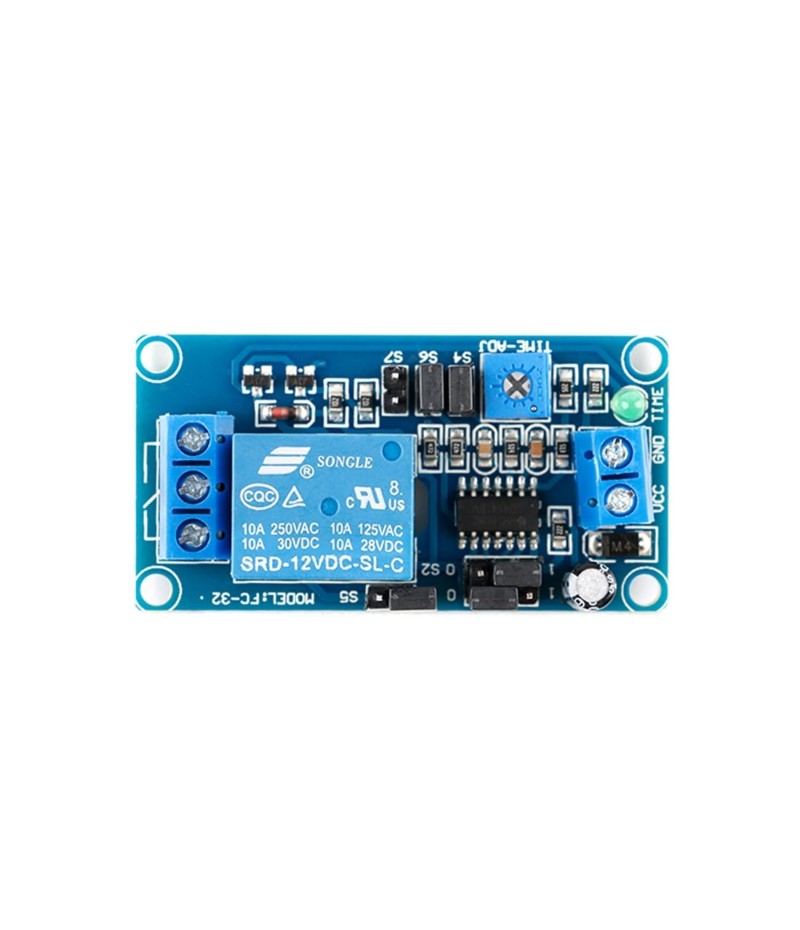 - - **Easy to Use & Install**: Featuring a double-sided FR-4 PCB and a delay adjustment potentiometer, this module is straightforward to incorporate into your projects. Its compact size (57*30*18.5mm) makes it easy to fit into limited spaces.
