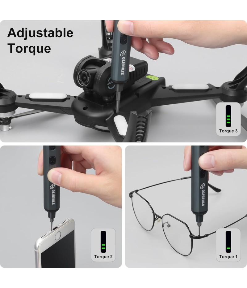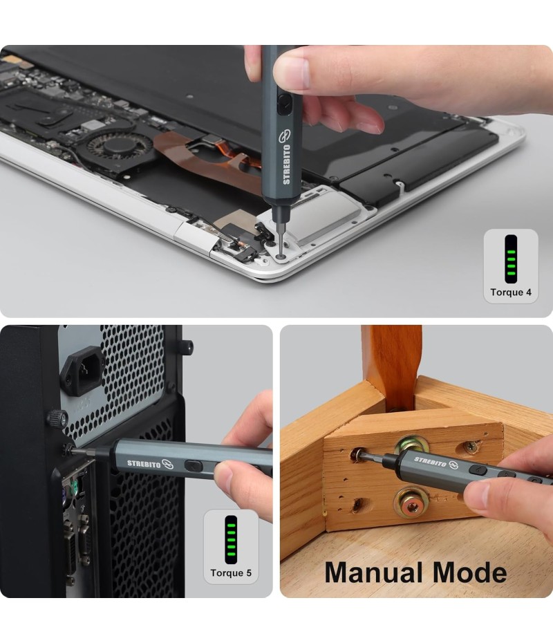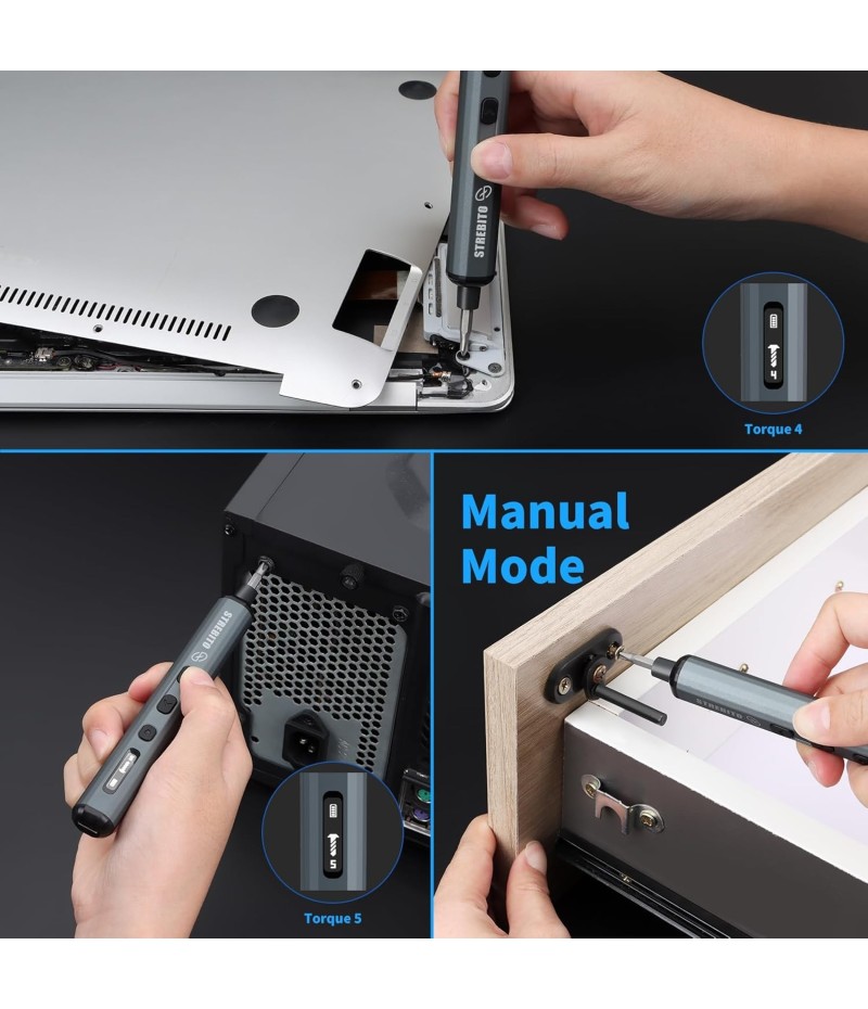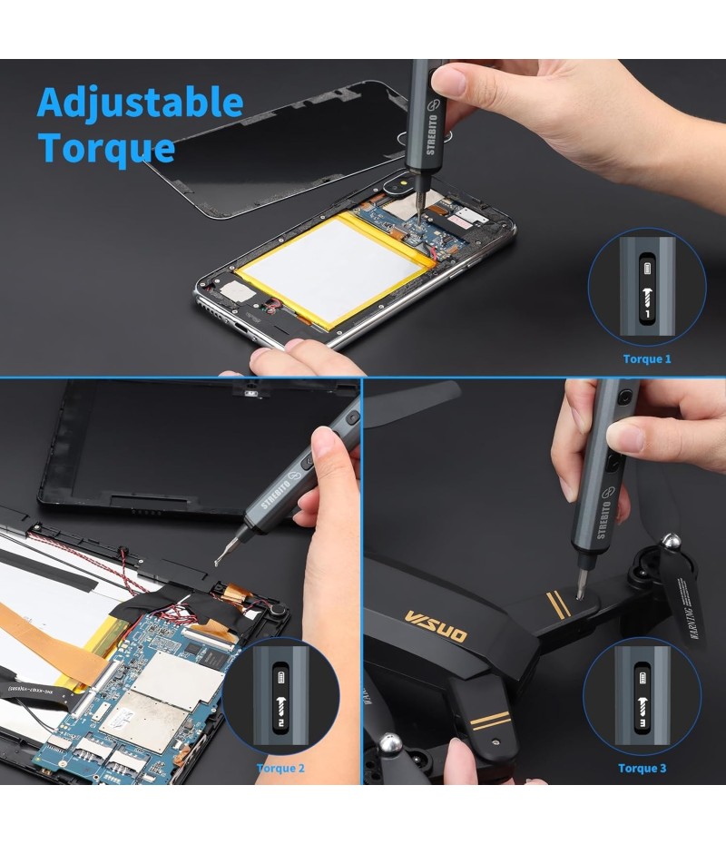 • 【5 Torque Settings】The STREBITO electric precision screwdriver features 5 gear torques ranging from 0.15-0.35N.m, allowing you to adjust the torque precisely to meet various needs. The manual torque of 7N.m gives you increased control for manual screwdriving. With easy torque adjustment and stable torque output, this precision electric screwdriver can satisfy all your demands, includes PC, Computer, Laptop, Cell Phone, Macbook, RC Car, Drone, Keyboard, PS4, PS5, and other electronic devices