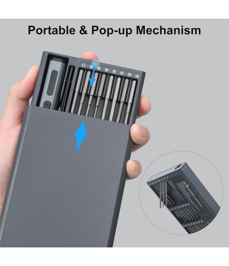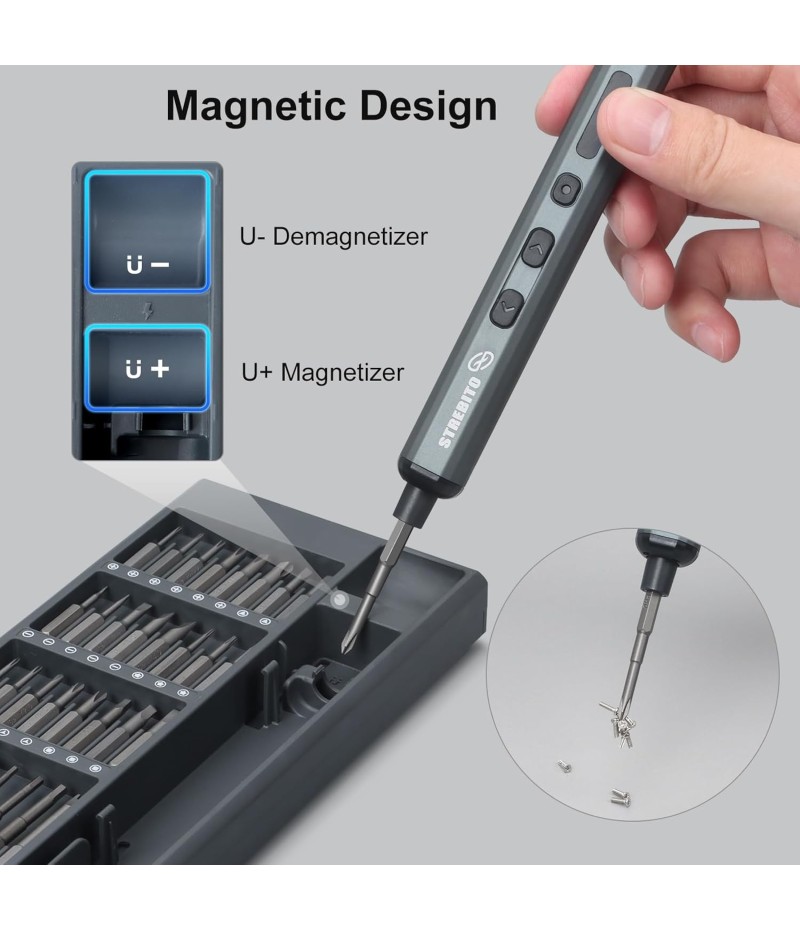 Included Components ‎Electric Screwdriver, 64PCS S2 Bits, Magnetizer Tool, Magnetic Mat, Metal Spudger, Pointed Tweezers, USB Charging Cable