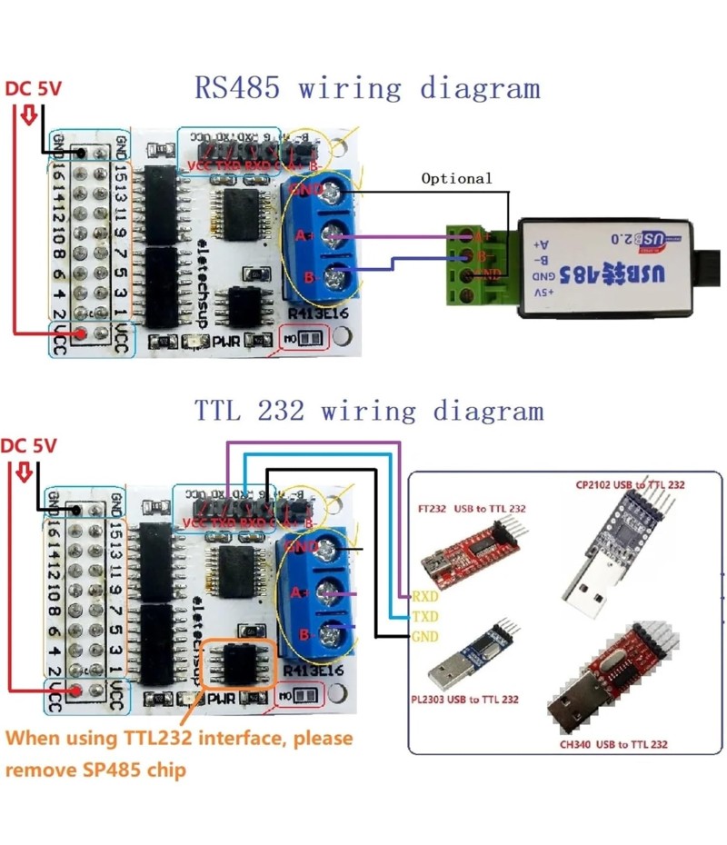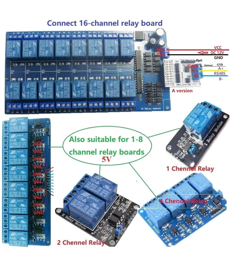 Packing list: 2Pcs 5V 16 Channel Multifunction RS485 Control Board for 5-24V 1-16CH Relay Module (select the version you need)