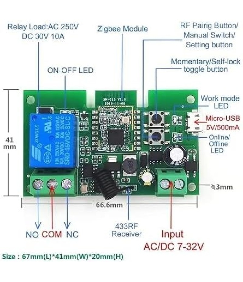 - Working voltage DC 5V or AC/DC 7-32V,work as a wireless zigbee switch in self-lock mode,as smart zigbee button in momentary mode,Automate your motorized Curtain Blind with interlock mode.Set working mode by pressing the mode change button on board.alexa integrate your home automation