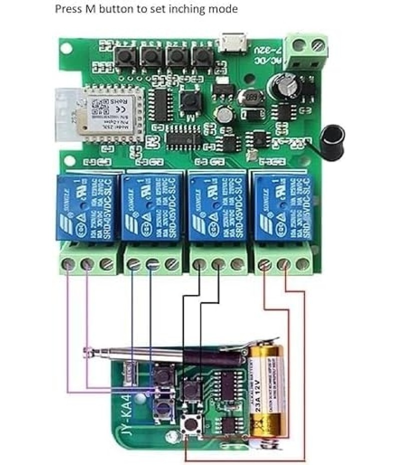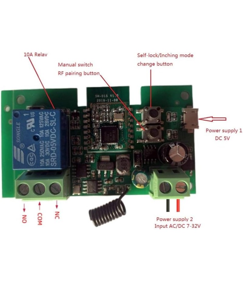 1. Default inching Function: Press the open relay by mobile phone, then cut off the pull-on immediately(default one second)