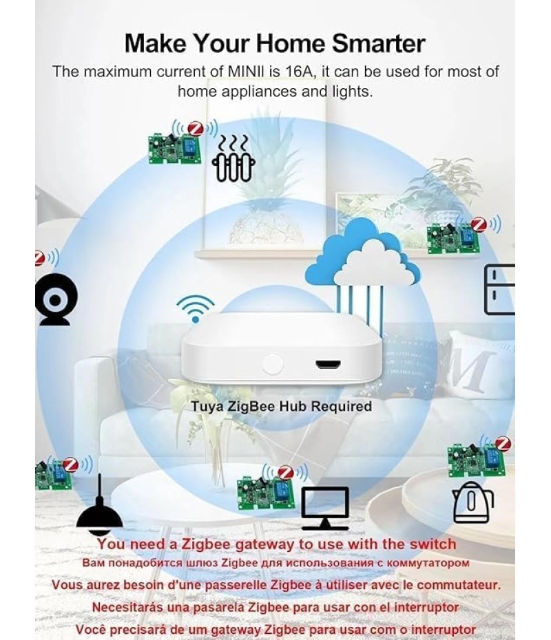 - Smart app remote turn on/off anywhere,Why zigbee?Have a bunch of devices on your Wifi network?Overcrowded home Wifi network, internet becomging less stable?No worries! Hub + Zigbee, Very responsive, fast switching, more stable