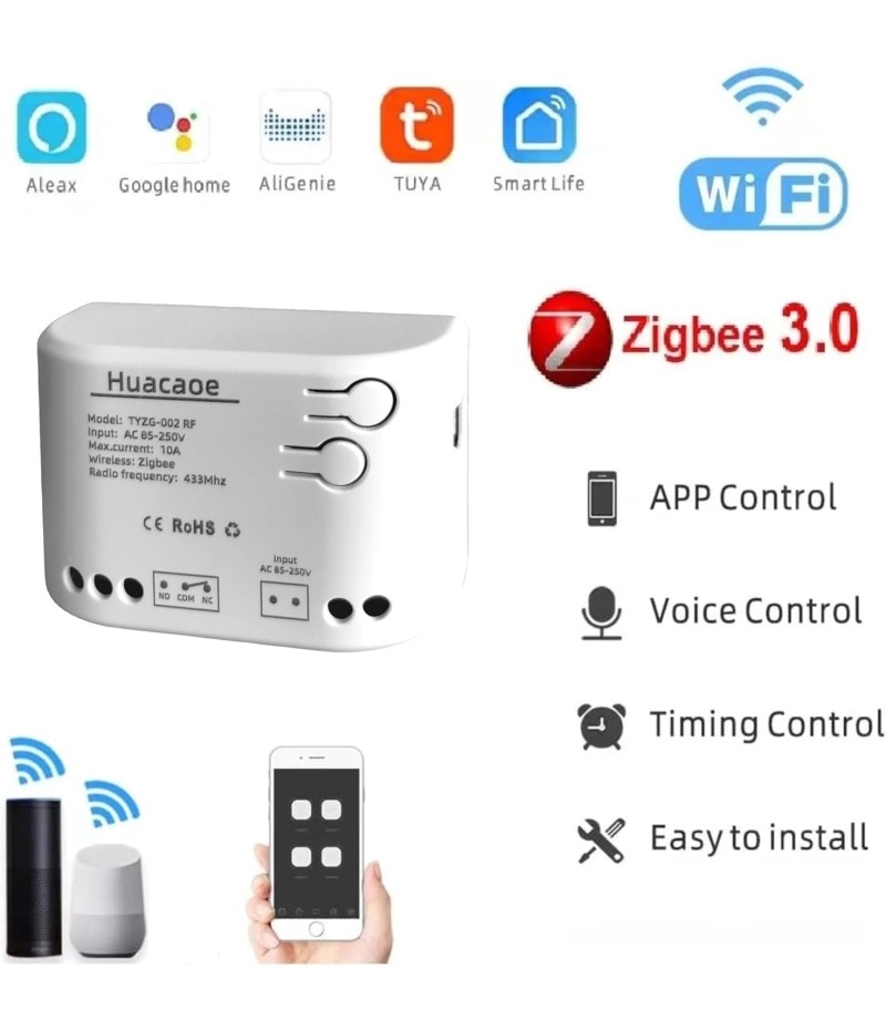 - Voice Control,works with Amazon Alexa and Google home devices for complete voice control, remote control and Intelligent timing. Free your hands.With 433Mhz RF receiver built in,support fixed learn 433Mhz RF(don't included)