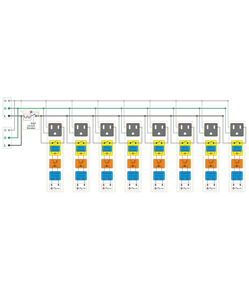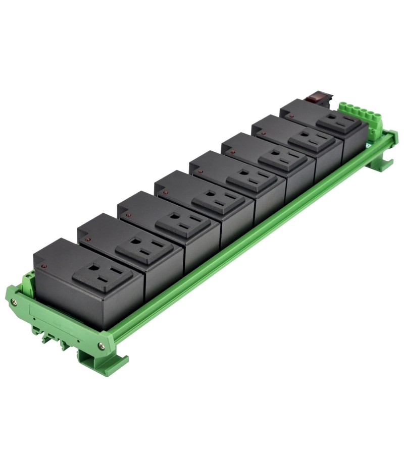 - AC Power 8 Channel IoT Relay Outlet Module. Each receptacle features a built-in 10 Amp power relay, compatible with most controllers for flexible on/off control of the output. The AC120V power for each receptacle can be directly controlled via controllers like Arduino, Raspberry Pi, ESP32, MCU, PLC, etc., simplifying wiring and making maintenance easier.