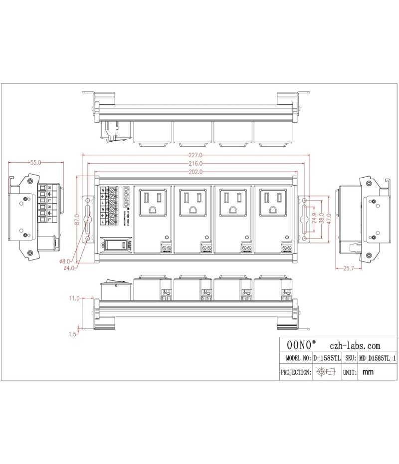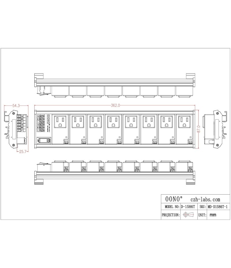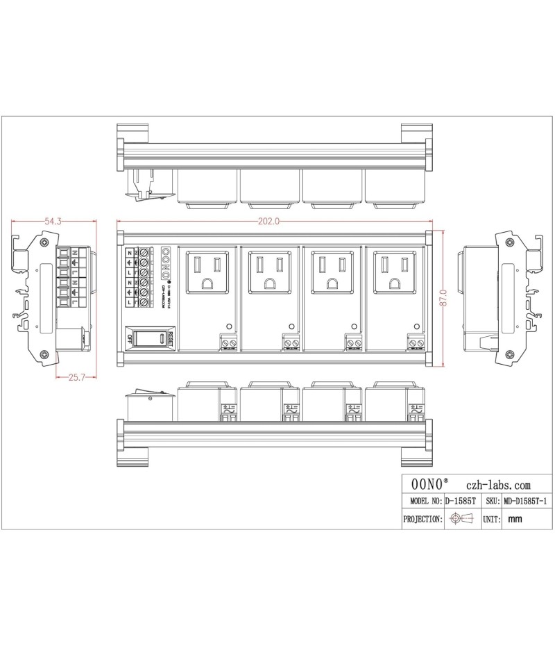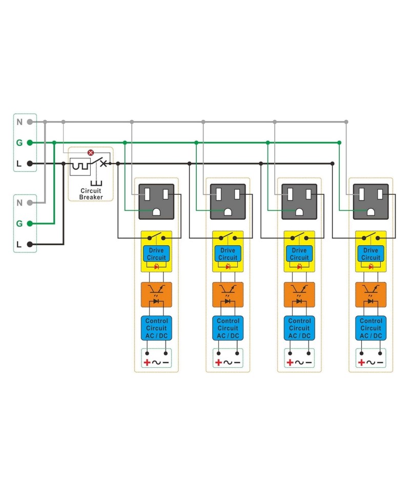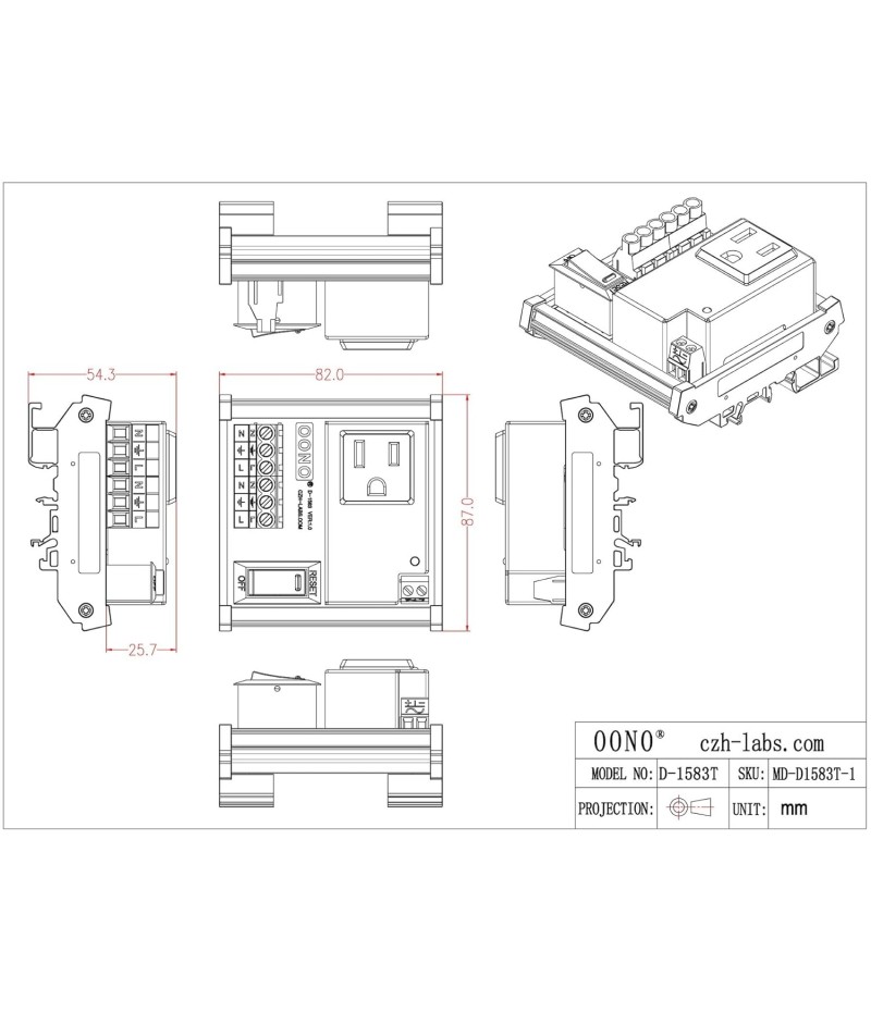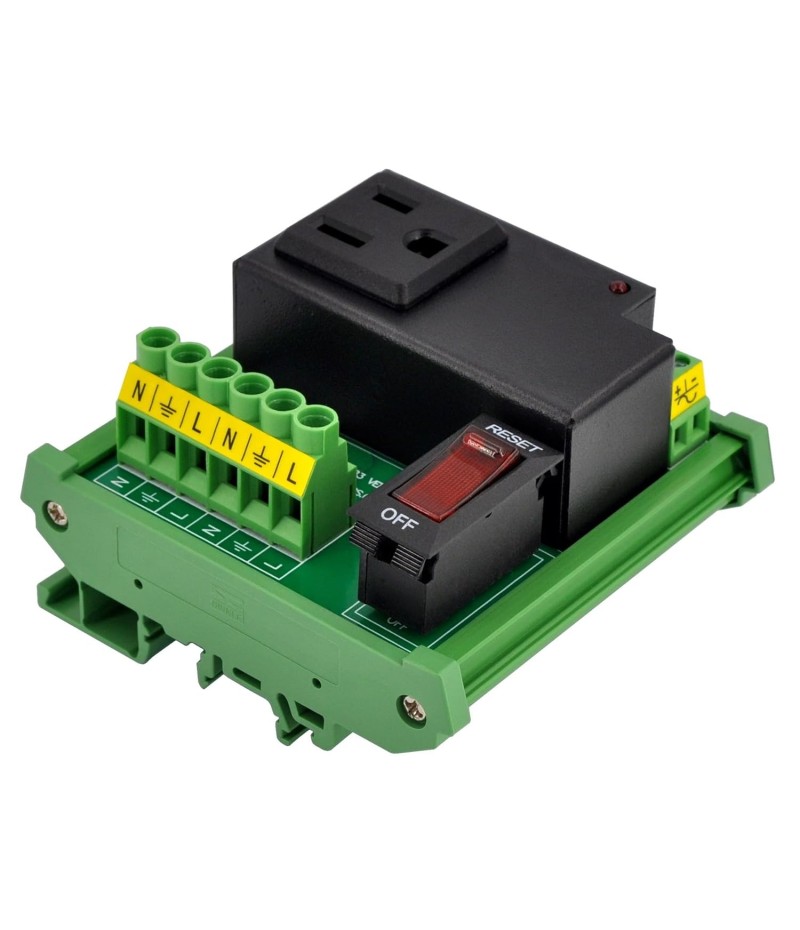 - Certified for safety with UL, CE, and CQC certified terminal blocks, UL 94-V0 certified PCB, UL/CE certified DIN rail mount carrier, UL-certified overload protector, and UL/CE certified NEMA 5-15R AC receptacles.