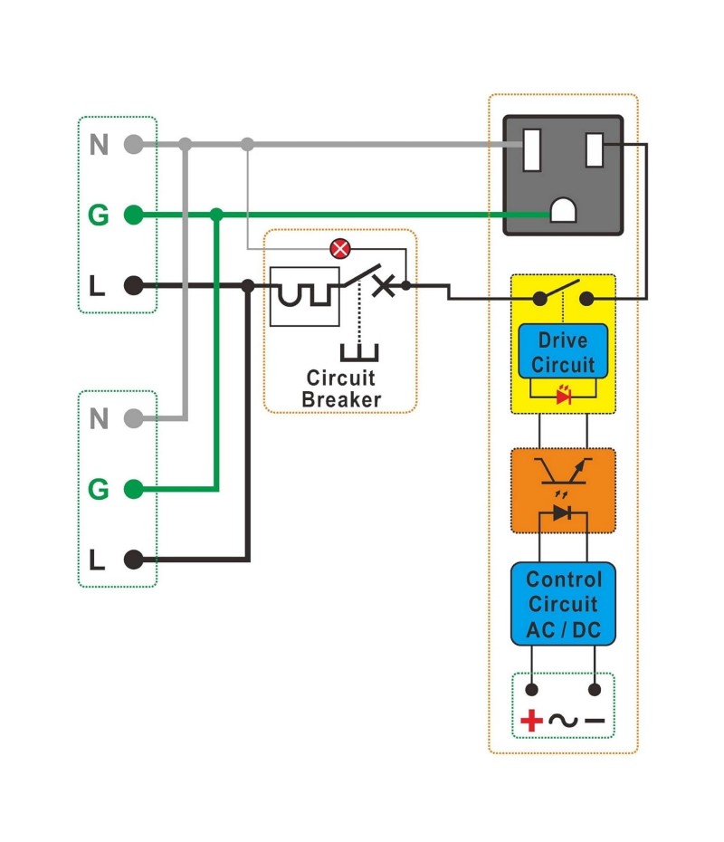 - Equipped with a resettable rocker thermal circuit breaker overload protector, rated for 15 Amps. Includes a built-in red indicator and supports manual control of all receptacle outputs.