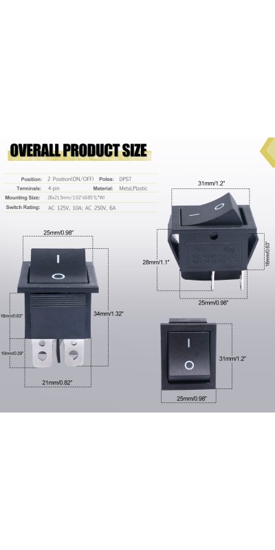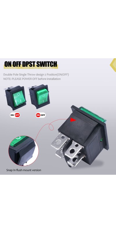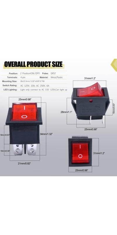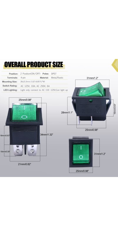 2Pcs Rocker Switch 4 Pins 2 Position ON/Off AC 10A/125V 6A/250V DPST Green and Red LED Light Illuminated Boat KCD4 Rocker Switch Toggle KCD2-201N-RG