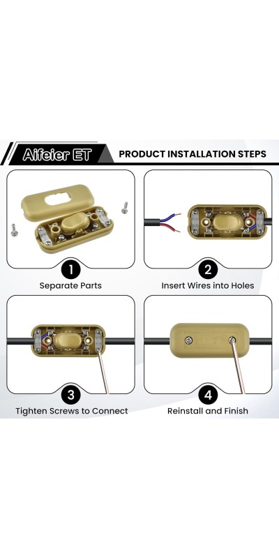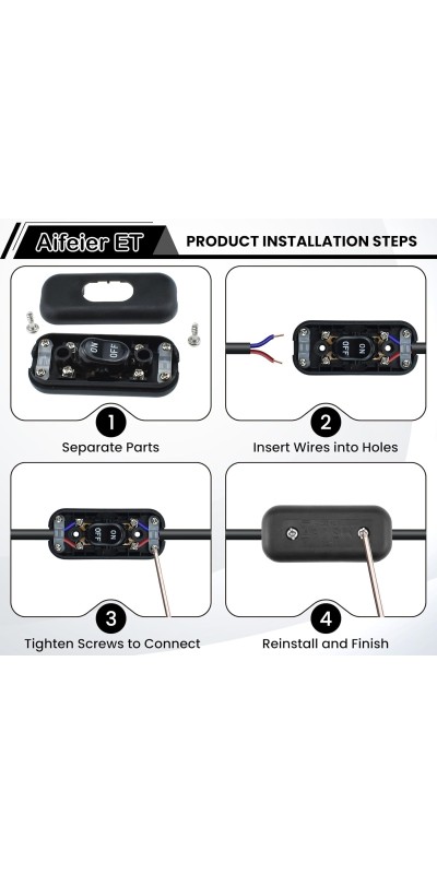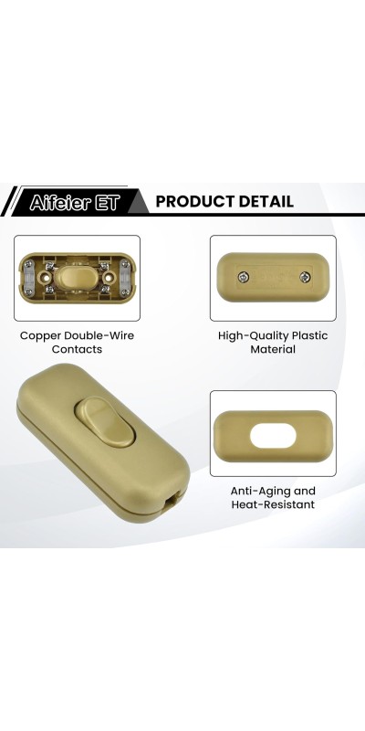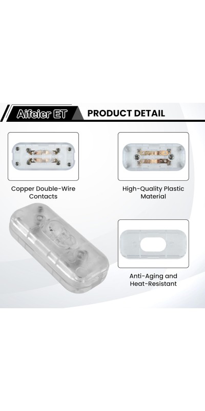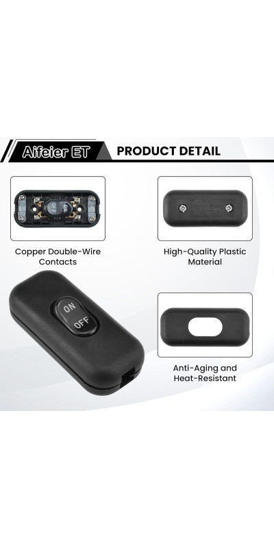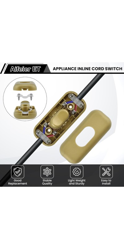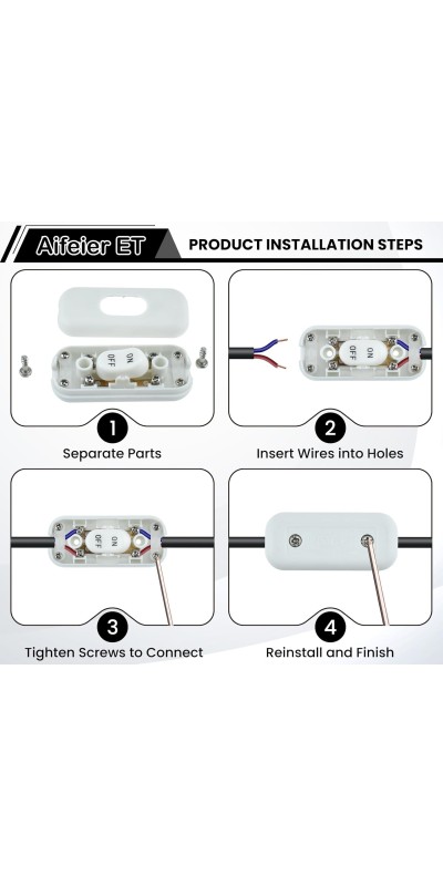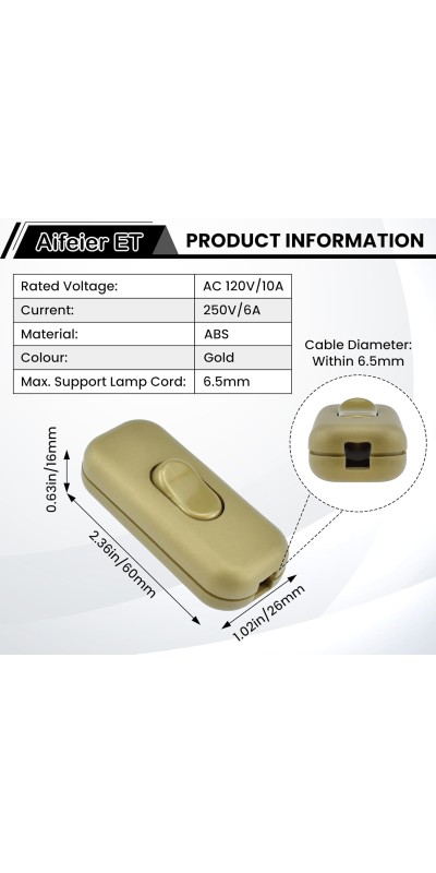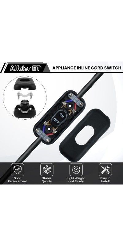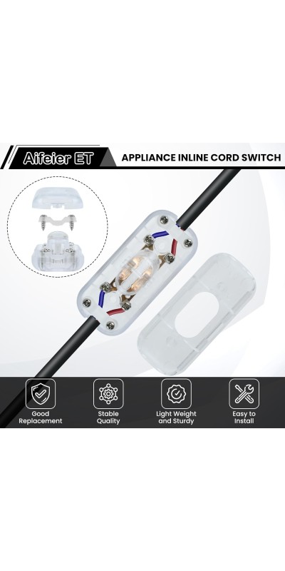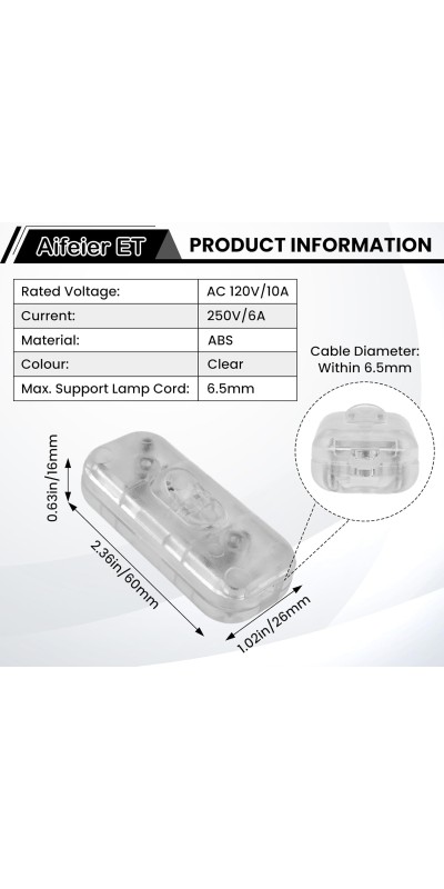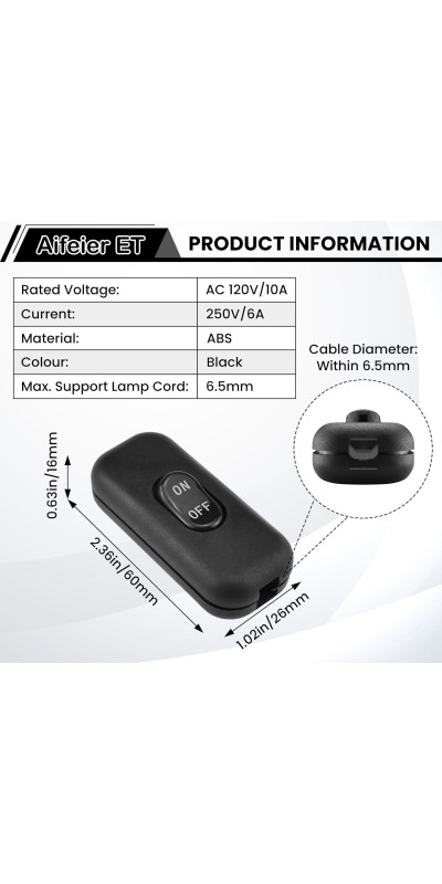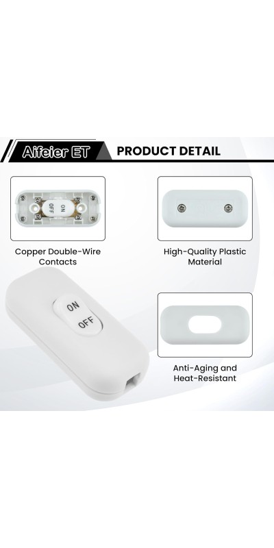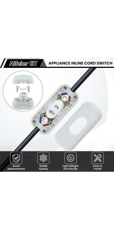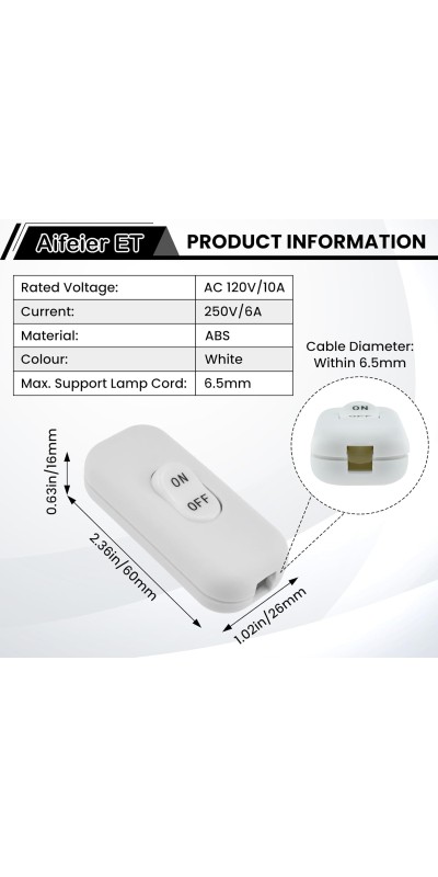 ET Inline Cord Switch, AC 250V 6A On/Off Lamp Cord Button Appliance Control Rocker Switch Replacement for Appliance or Bedroom Table Lamp Desk LED Lights, White