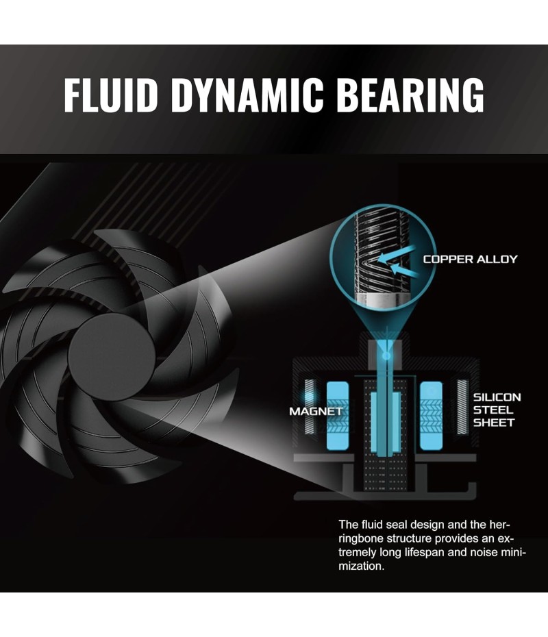 - Native 12V-2x6 Connector Dual Color Design with TempGuard 135mm Striped Axial FDB Fan