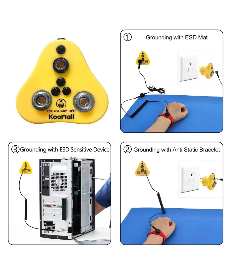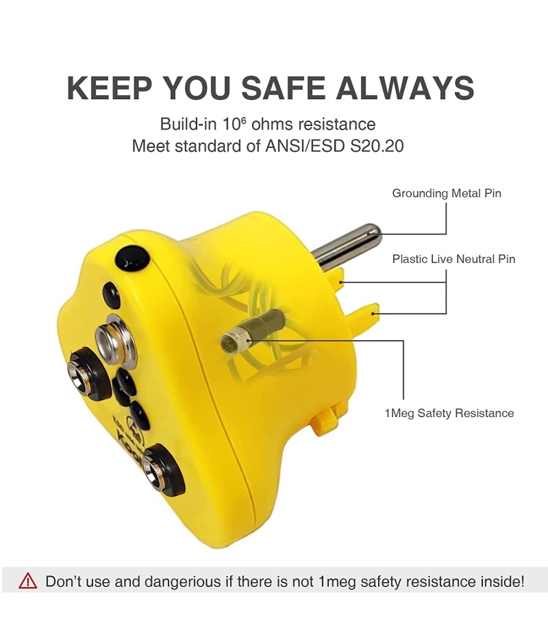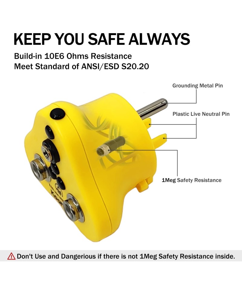 - 【ESD Grounding Plug】Our ESD Grounding Plug, Build in 1Meg ohm Safety Resistance,is designed for Safety ESD Control. It’s perfect to use together with Antis Static Mat ESD Wrist Strap, ESD Bracelet Band, Grounding Cord.