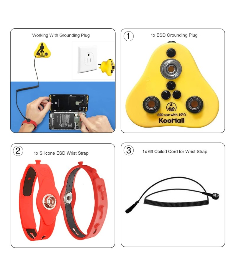- 【Widely Application】 Earth Boning Grounding plug is necessary and easy to work with wrist strap and table or floor mat in ESD control when Assembling or repairing electronic devices such as smart phone, computer, tablet, sport watches, smart toys, IC circuit boards, etc.