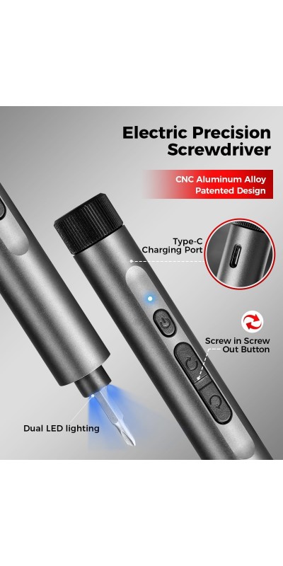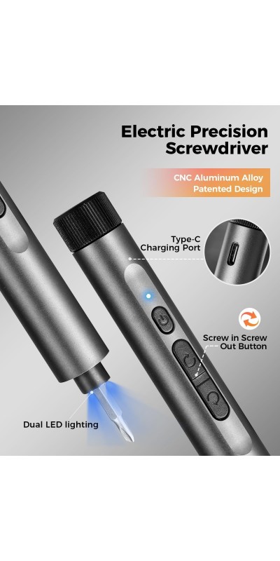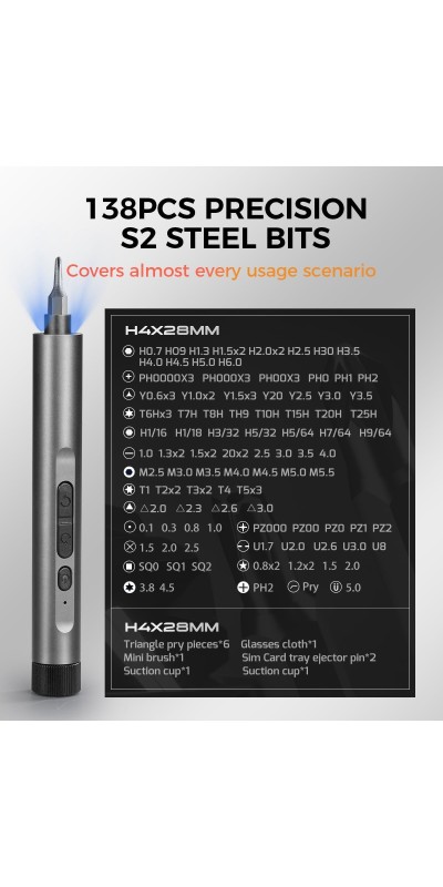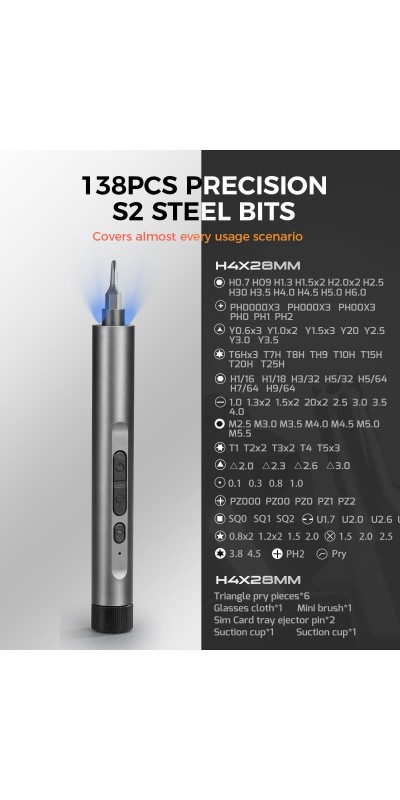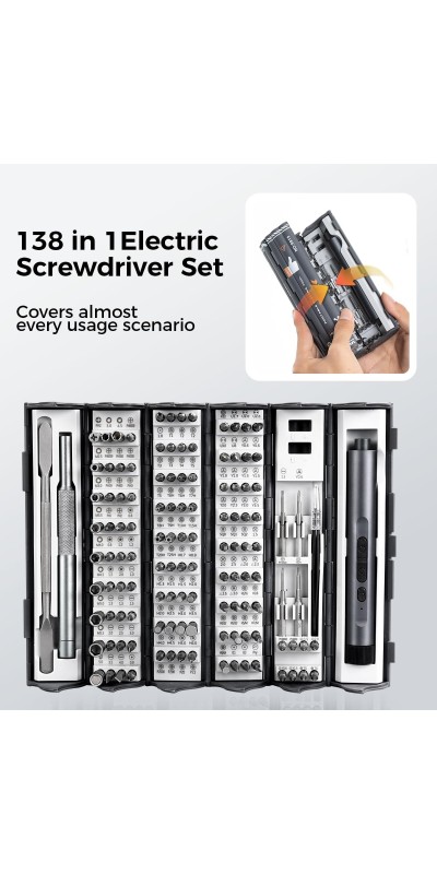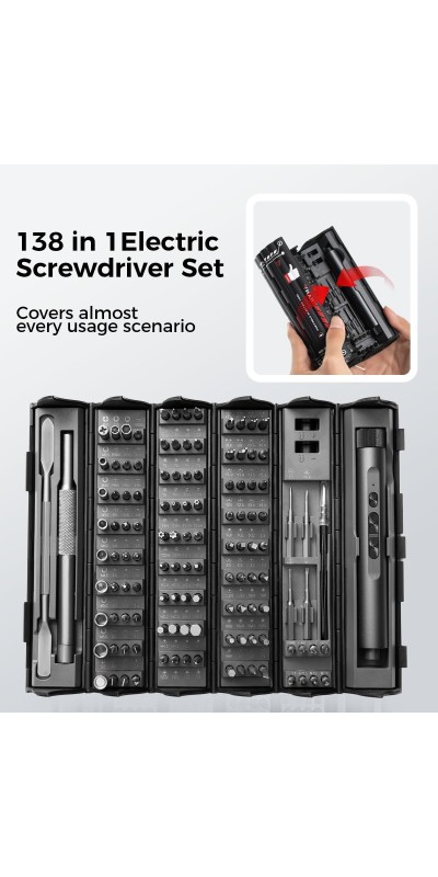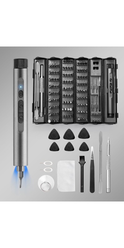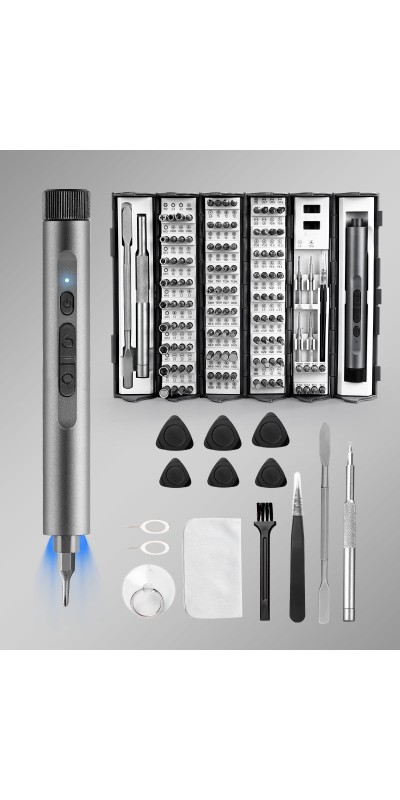 Screwdriver Kit, 138 in 1 Precision Electric Screwdriver, 120 S2 Metal Magnetic Bits, LED Light, 3.7V Rated Voltage, Repair Tool Kit for Phone Watch Camera Laptop PC,Grey