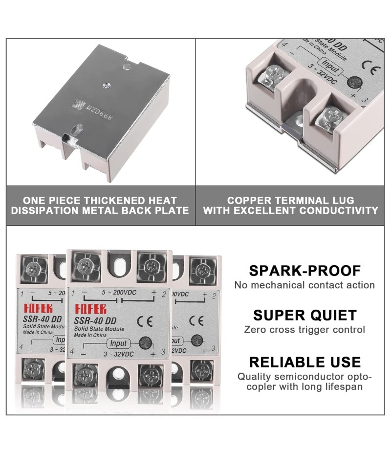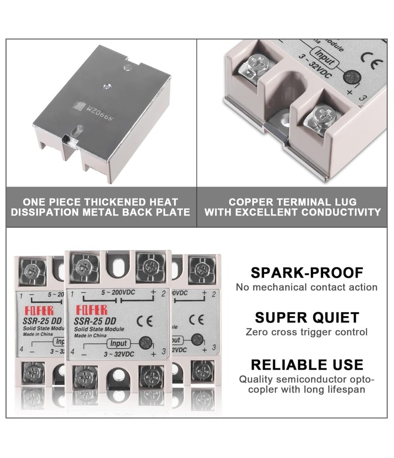 • 【Optocoupler】: Core components of solid state relay quick switch speed, withstand voltage high.