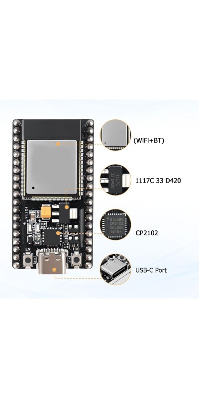 3PCS ESP Development Board, LUIRSAY ESP DevKit with 2.4GHz WiFi + Bluetooth Dual Core, CP2102 Chip, ESP USB-C Port, Support AP/STA/AP+STA, for Arduino IDE (38Pin)